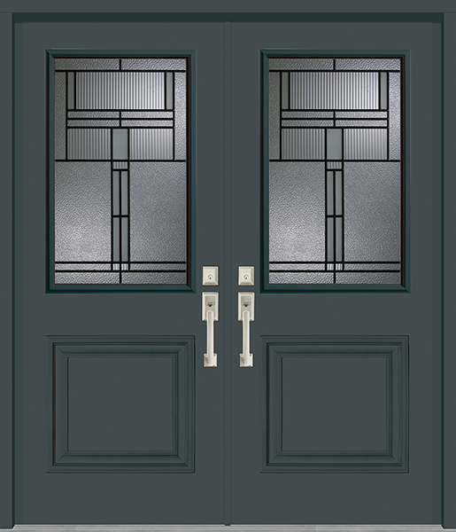 Welcome your guests in style with the Brighton collection’s vertical sophistication. An inspired combination of sandblasted, narrow reed and granite glasses align to create a high-toned, scholarly finish. Outlined with classic patina caming, the custom Brighton experience will open your home to modern luxury.
