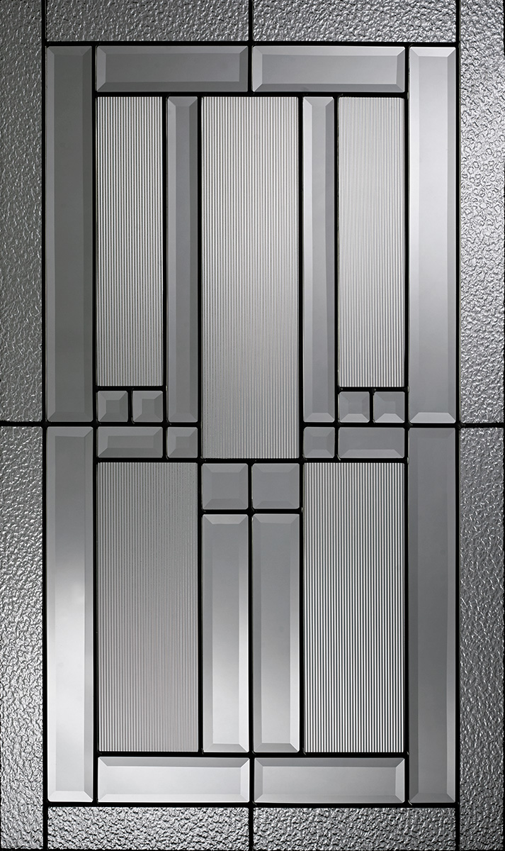 Broad rectangular layers combine to conjure the simplified poise of the Dayton collection. Classic, contemporary design is realized with granite glass, clear bevels and a luminating finish. For customizing, panels can be connected with your choice of zinc or patina caming to bring Dayton’s magnetic spirit to the forefront.