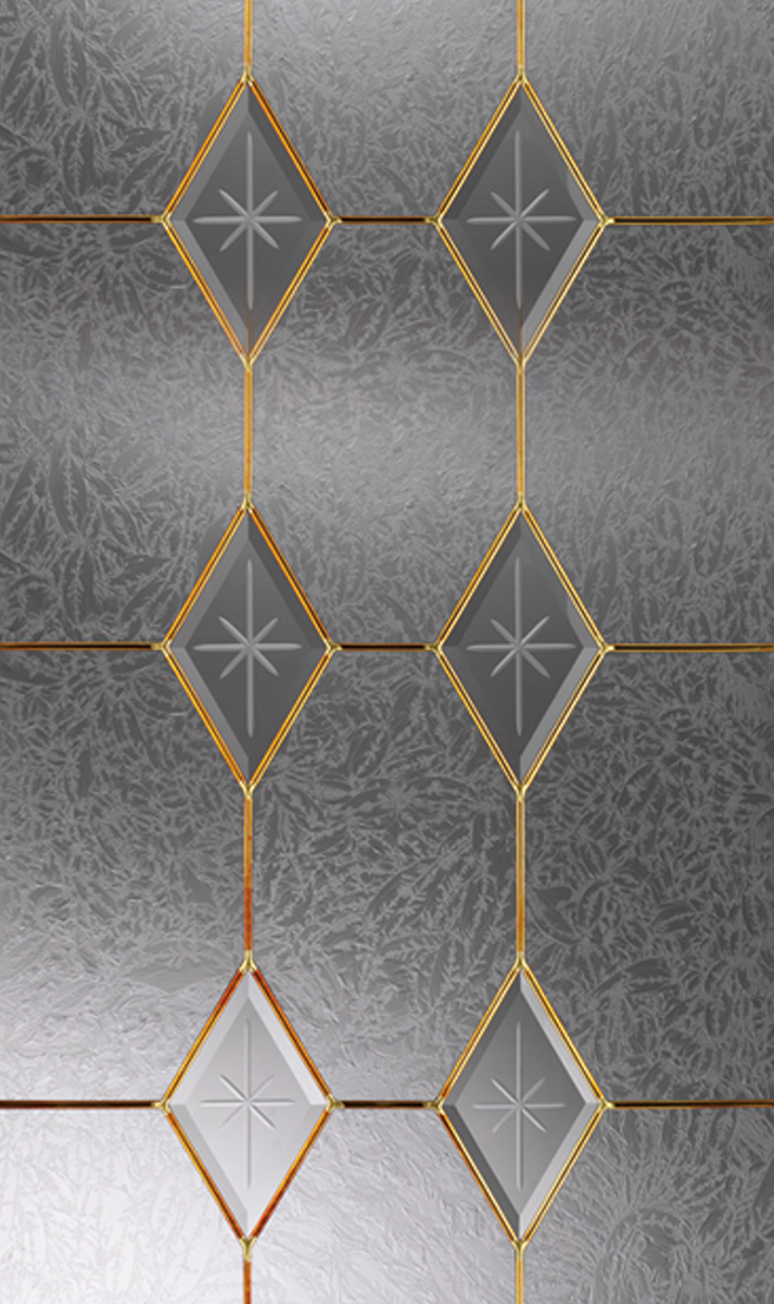 The Caldo collection offers understated sophistication. The clear diamond bevels and glue chip glass are carefully and proudly placed within the frame of the door. Finished beautifully with brass or zinc, the simple design of the Caldo is breathtaking.