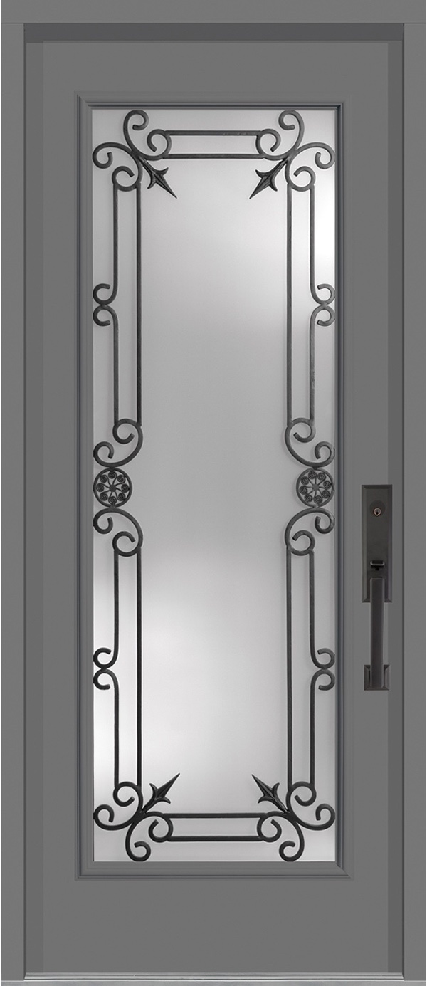 The charming appeal of rustic wrought iron. An inviting satin-etched privacy glass. The Strathallan collection truly turns a whisper into a bold statement. With its subtle perimeter design and small cluster details, the Strathallan will enhance the timeless appeal of your home. Add a personal touch by using one of our many custom glass options.
