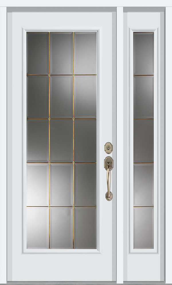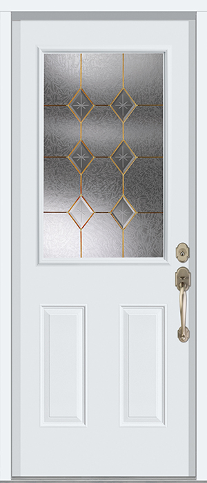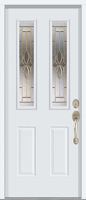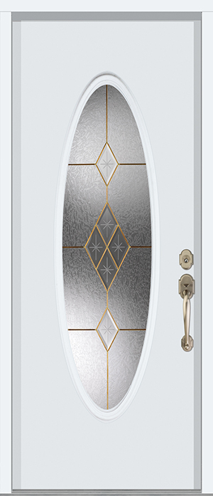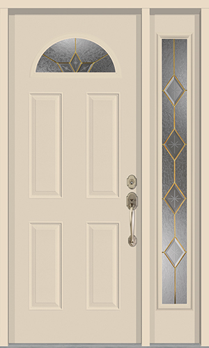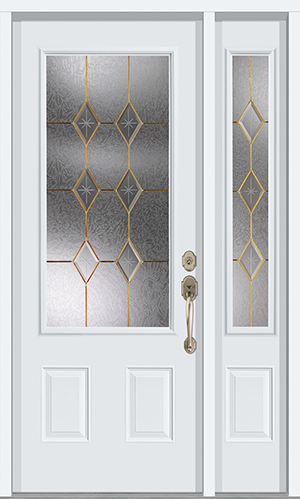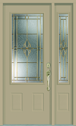 The Ontario Brass or Zinc Collection is available in three distinct models. The Bedford, Dunvegan, and Caldo designs each offer a distinctly Ontario-inspired look. By combining brass or zinc caming and clear delicate bevels, the Bedford is simple and distinguished. By combining brass or zinc caming with clear ripple and glue chip glass, the Dunvegan is a simple yet private design. With subtle, clear diamond bevels and glue chip glass, the Caldo decorative design offers a true Ontario feel. All of the Ontario Brass or Zinc Collection is designed to be simple, subtle, and will add elegance to any entrance system.